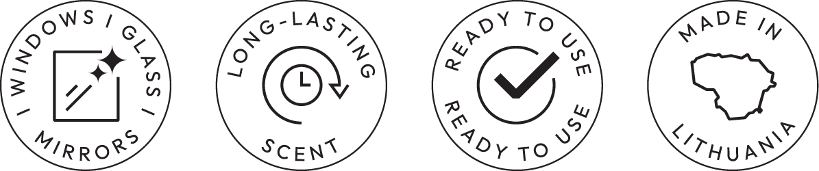 Ideāli piemērots logu, stikla starpsienu, spoguļu, kristāla, porcelāna, glazētu flīžu un glancētu skapju virsmu tīrīšanai.